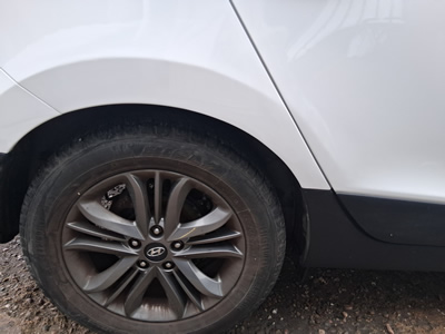 Before and After of a Hyundai that came in with damage on the Passenger Front Wing and Bumper Corner